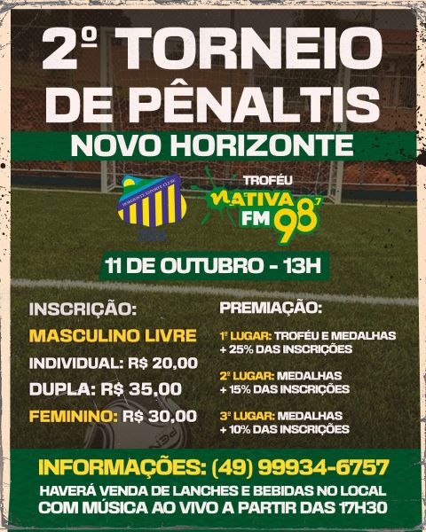 O Horizonte Esporte Clube se prepara para o 2º Torneio de Pênaltis – Troféu Nativa FM 98,7, marcado para o dia 11 de outubro, a partir das 13h, na quadra do Loteamento Novo Horizonte.