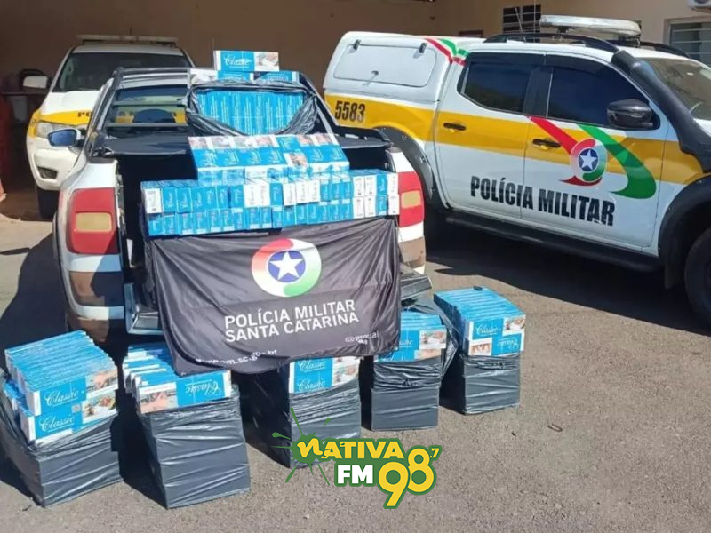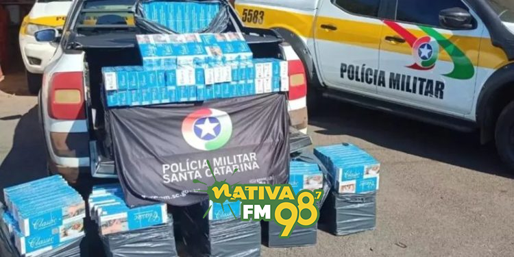 Equipes da Polícia Militar Rodoviária (PMRv) apreenderam cerca de 4 mil maços de cigarro contrabandeado durante uma abordagem na tarde desta sexta-feira, dia 12, na SC-480, em São Domingos, no Oeste catarinense. Segundo a guarnição de Bom Jesus, a ação também contou com o apoio da Receita Federal.