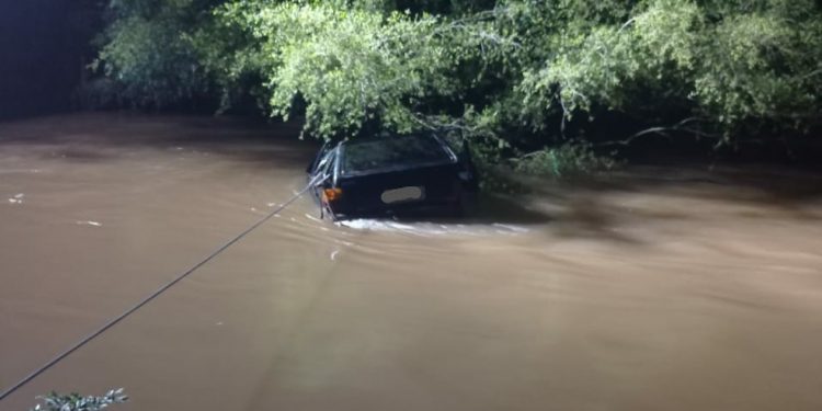 O homem foi retirado consciente do veÃculo pelos agentes. No momento da operação, a água estava na altura dos vidros laterais.