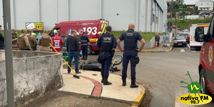 Motociclista morre em colisão com ambulância no Centro de Caçador