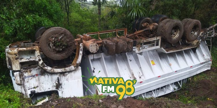 Um caminhão saiu da pista e capotou na tarde deste sábado (18) na BR-282, no município de Catanduvas. O acidente foi registrado por volta das 16h43, e mobilizou equipes do Corpo de Bombeiros Militar e do SAMU.