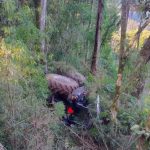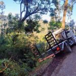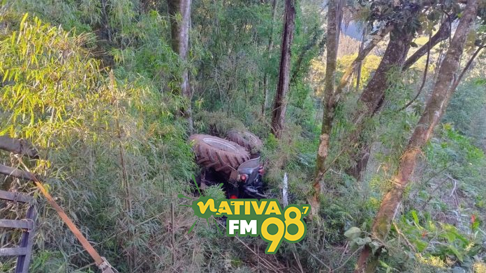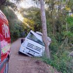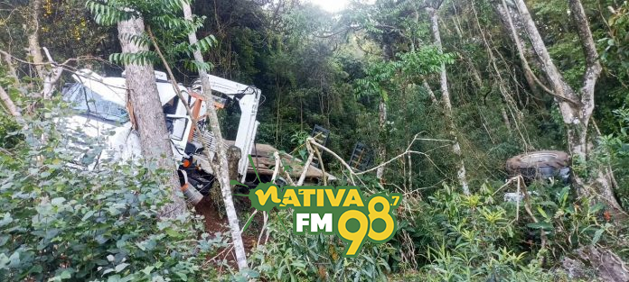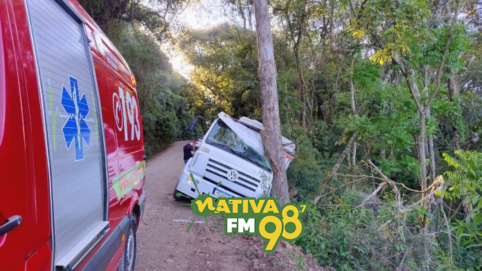 De acordo com informações dos bombeiros, um caminhão prancha saiu da pista e colidiu violentamente contra uma árvore. O veículo transportava um trator agrícola, que com o impacto acabou despencando em um barranco às margens da via.