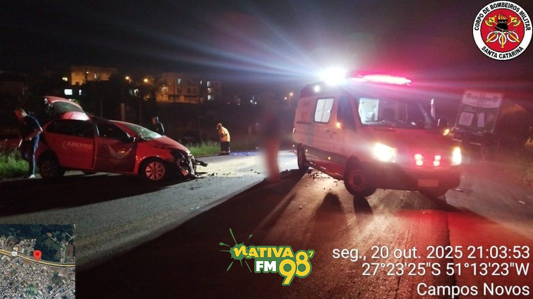 O acidente ocorreu por volta das 20h43min e mobilizou equipes do Corpo de Bombeiros de Campos Novos e do SAMU que atenderam a ocorrência.