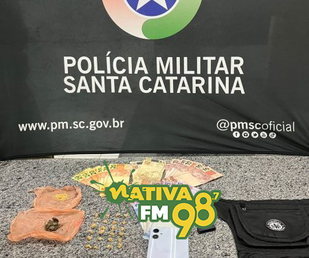 Na revista pessoal, os policiais encontraram 4,4 gramas de crack, 2,7 gramas de cocaína e 2,5 gramas de maconha, todas fracionadas e prontas para a venda. Além disso, foram apreendidos dinheiro trocado e um aparelho celular.