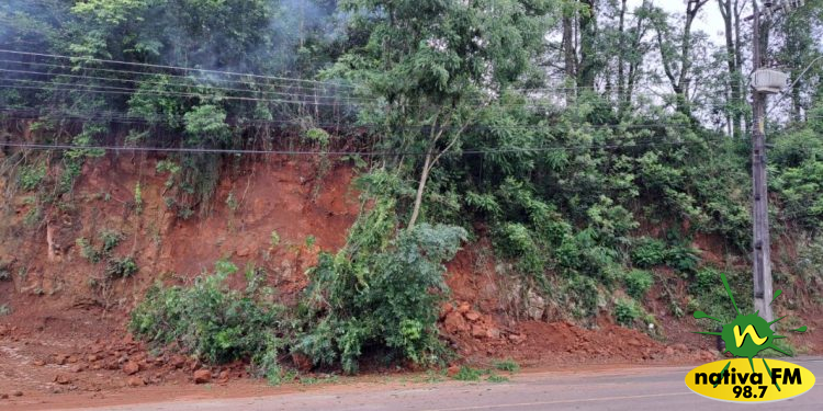 Um deslizamento de terra foi registrado na manhã deste sábado (04), na Rua João Tonini, no Loteamento Colina, em Capinzal.