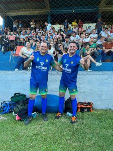 Os irmãos Adilson e Rivelino Zambão lideraram a equipe Amigos da Bola de Joaçaba à vitória no 1° Campeonato Sul Brasileiro de Veteranos (categoria 50), realizado nos dias 14 e 15 de novembro, em Joaçaba. O evento reuniu seis equipes de três estados do Sul do Brasil.