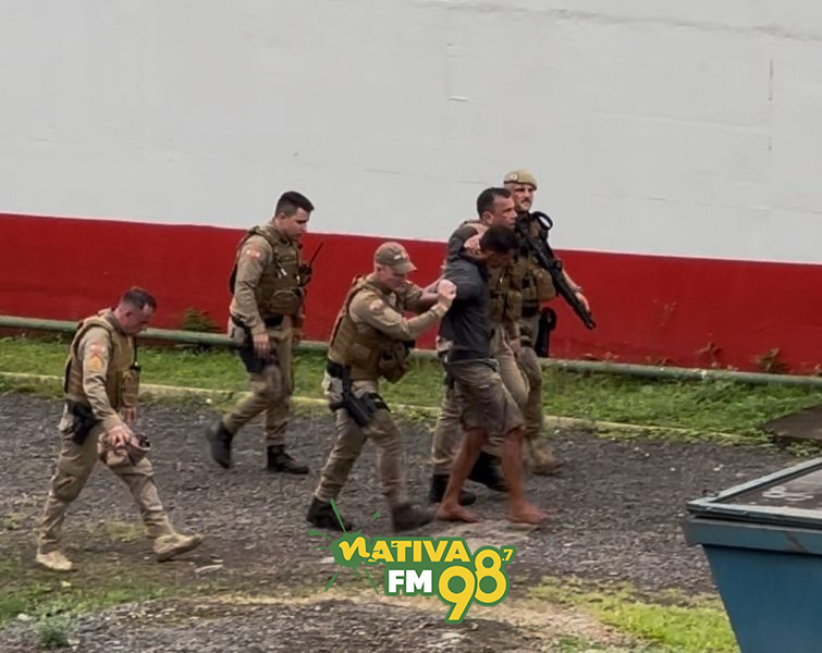 Ao perceber a presença das guarnições, ele fugiu para uma área de mata nas proximidades da empresa BRF, onde tentou se esconder e chegou a entrar no rio para escapar. Com um cerco nas redondezas, os policiais conseguiram detê-lo.