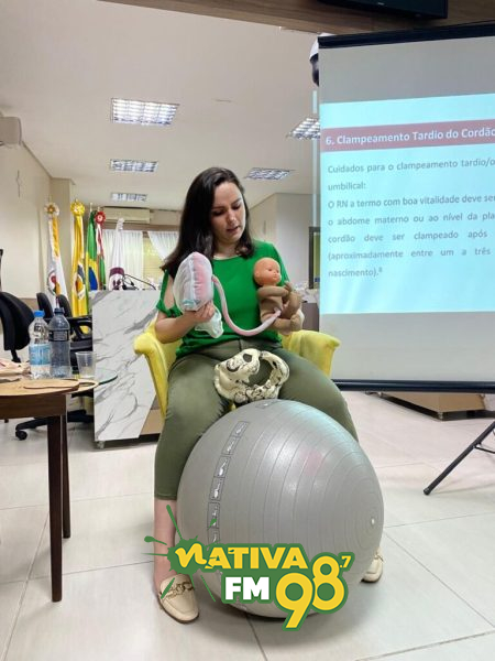 Na quarta-feira, dia 06, no plenário da Câmara de Vereadores, foi oferecida a palestra com enfermeira Rafaela Grosser, especialista materno infantil e consultora em amamentação. Foram abordados temas como: período gestacional, sinais e alerta, sinais de trabalho de parto/cesárea, condutas, métodos não farmacológicos para alívio da dor, posição e exercícios.