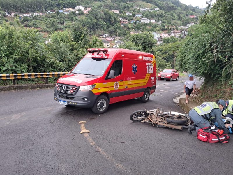 Uma motociclista de 34 anos ficou ferida após sofrer uma queda na manhã desta terça-feira (18) na Rua Agenor Jacob Dalla Costa, no bairro Nossa Senhora dos Navegantes, em Ouro. O acidente ocorreu por volta das 6h54min, quando o Corpo de Bombeiros Militar foi acionado para atender a ocorrência.