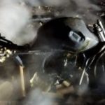 A moto que estava na garagem também foi completamente queimada