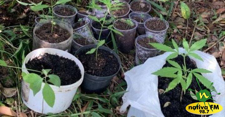 Uma operação policial apreendeu 47 mudas de maconha (cannabis sativa), encontradas em vasos, copos e sacolas plásticas nesta quinta-feira (01).