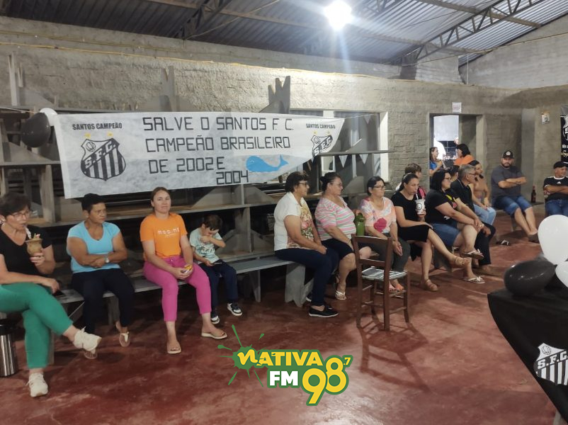 Torcedores santistas reuniu-se na noite desta sexta-feira, dia 06, no salão da comunidade de Linha Gramado, interior de Capinzal, para celebrar o retorno do Santos Futebol Clube à Série A do Campeonato Brasileiro. A comemoração, marcada pela emoção e o resgate da rica trajetória do clube, foi conduzida pelo professor Isaias Bonato e por Aquiles Mantovani, que destacaram a importância do momento e o legado do time na história do futebol.
