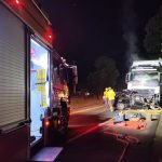 Ao chegar ao local, a guarnição confirmou que se tratava de uma colisão envolvendo um automóvel e um caminhão. O carro, um Volkswagen Gol preto, foi arrastado por aproximadamente 15 metros e acabou ficando prensado sob o cavalo trator do caminhão.