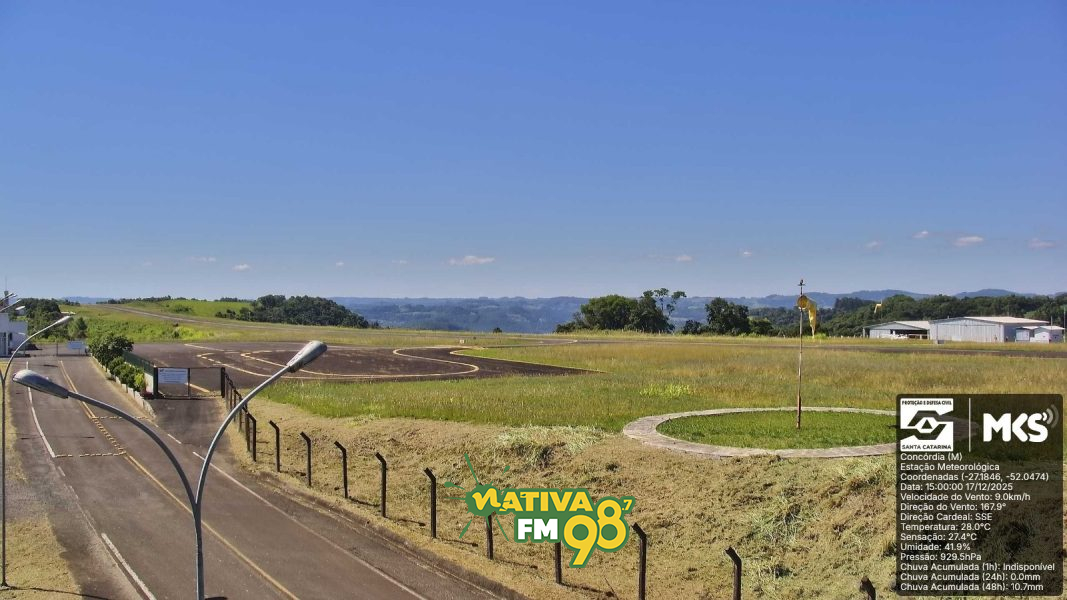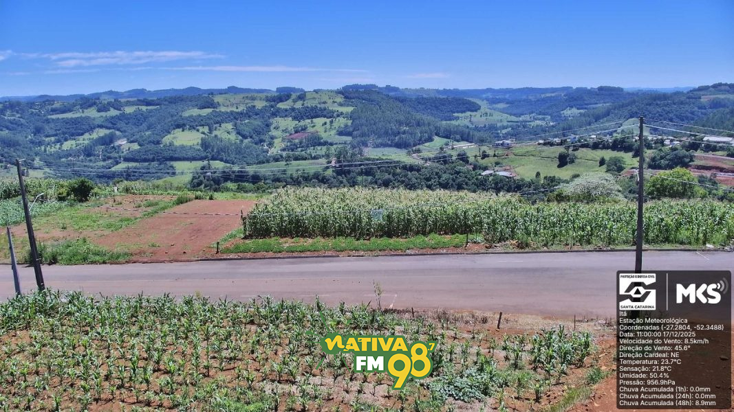 No suporte às condições climáticas, a rede também foi reforçada com estações meteorológicas estratégicas. Uma delas foi instalada no Aeroporto de Concórdia e a outra no município de Itá, permitindo um acompanhamento detalhado de variáveis como velocidade e direção do vento, temperatura, sensação térmica, umidade relativa, volume de chuva e pressão atmosférica, além de monitoramento por câmera e alarme antifurto.