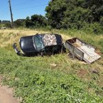 De acordo com as informações apuradas no local, um veículo Gol, com placas de Joaçaba, seguia no sentido SC/RS quando o condutor perdeu o controle da direção após a carretinha, carregada com telhas, balançar.
