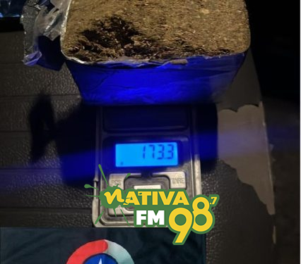 No interior da van, estavam quatro ocupantes: dois homens, de 31 e 25 anos, e duas mulheres, sendo uma delas uma adolescente de 16 anos. Durante revista pessoal e no interior do veículo, os policiais encontraram uma bolsa contendo um tablete de maconha, com peso aproximado de 173,3 gramas, além de uma balança de precisão material geralmente utilizado para fracionamento e comercialização de drogas.